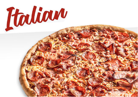 A zesty tomato sauce base, topped with fresh mozzarella cheese, then loaded with the classic Italian trio of pepperoni, bacon, and ham
