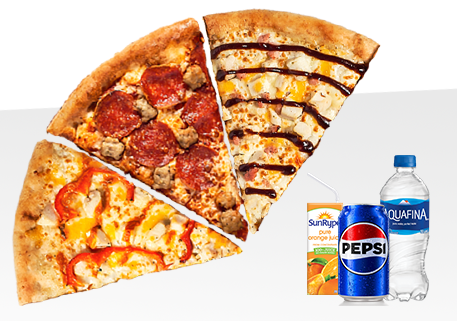 Elevate your pizza experience with our 3 slices combo. Mix and match from Classic and Feast pizzas, including Beef, Cheese, Hawaiian, Pepperoni, and Veggie. Upgrade to premium Feast slices like BBQ Chicken Bacon or Meat Lovers for just 50 cents more per slice. Complete your meal with a choice of refreshing beverages.